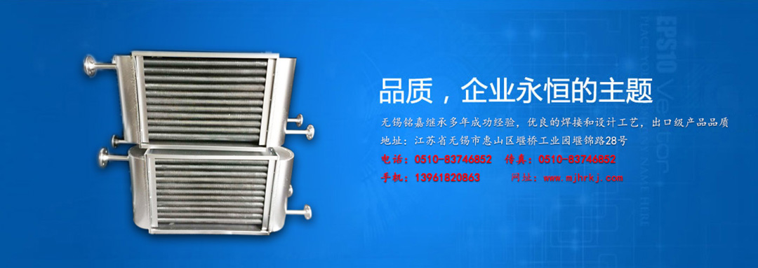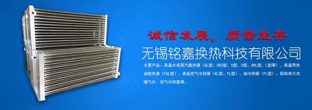 無錫銘嘉換熱科技有限公司是生產散熱器的專業工廠。 產品有:高溫水或蒸汽散熱器、高溫導熱油散熱器、表面空氣冷卻器、油冷卻器鋁制串片式暖氣片、空氣冷卻器、翅片管換熱器